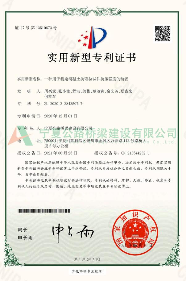 实用新型专利:一种用于测定混凝土抗弯拉试件抗压强度的装置