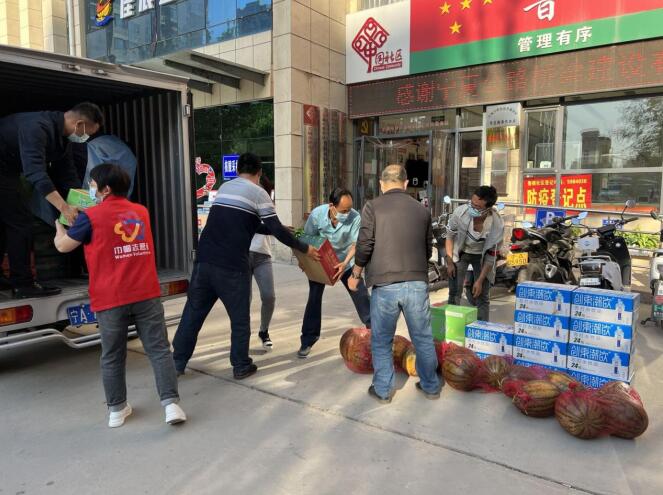 疫情面前显担当,非常时期显大爱,5月23日,im体育官网桥梁AYX爱体育公司为鲁银社区捐赠了方便面、矿泉水、西瓜等疫情防控物资。