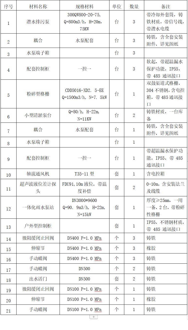 本次采购内容为雨水泵站、一体式泵站原料设施,要求质量及规格符合采购方要求。项目内容包含泵站供货、运输、调试及后期维修保养。